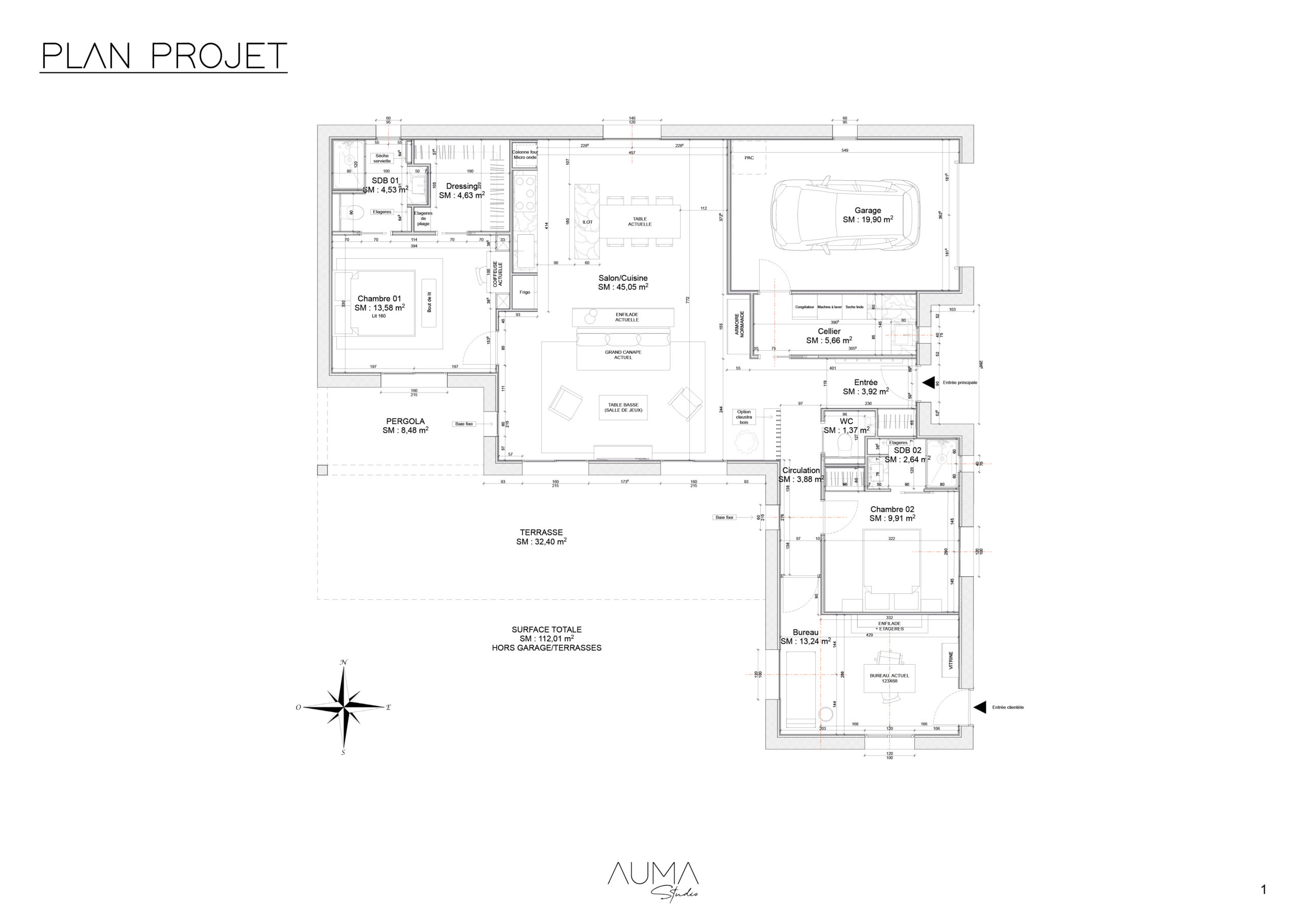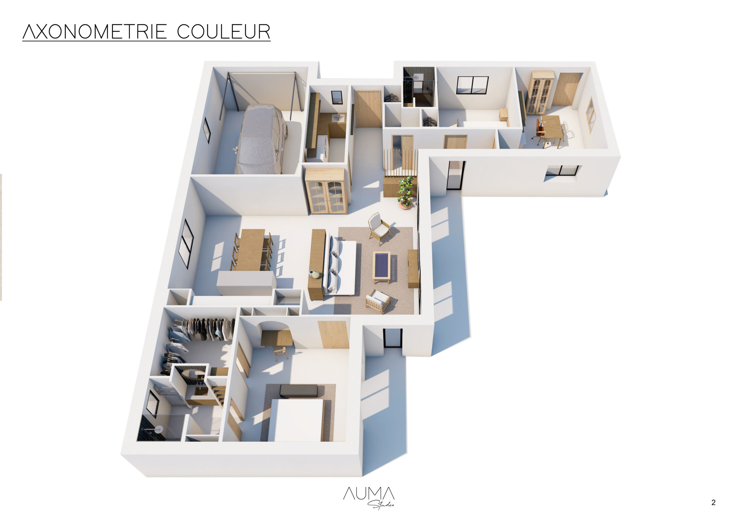 Dans le cadre d’une construction neuve en collaboration avec un constructeur immobilier, nous avons conçu un intérieur entièrement pensé pour répondre aux besoins de la cliente.