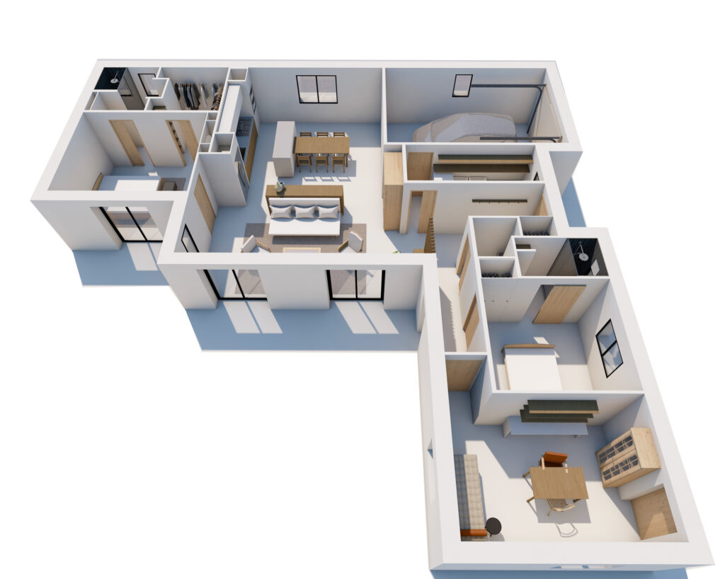 Dans le cadre d’une construction neuve en collaboration avec un constructeur immobilier, nous avons conçu un intérieur entièrement pensé pour répondre aux besoins de la cliente.